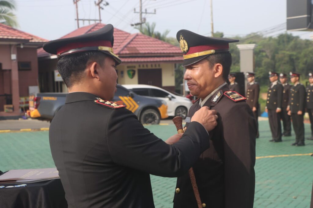 Kapolres Balangan AKBP Dr. Yulianor Abdi membacakan amanat Kapolda Kalsel yang menyatakan bahwa Tanda Kehormatan Satyalancana Pengabdian bukan sekadar simbol masa kerja, namun merupakan bukti nyata pengakuan negara atas dedikasi, integritas, dan loyalitas personel Polri.