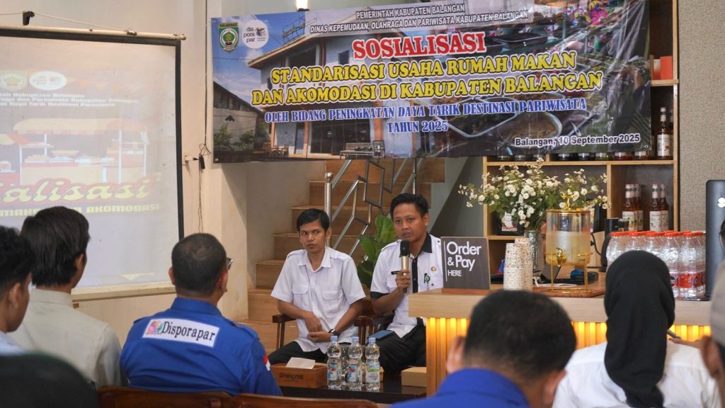 PARINGIN, RB – Dinas Kepemudaan, Olahraga dan Pariwisata (Disporapar) Kabupaten Balangan, Kalimantan Selatan (Kalsel), membuka pendaftaran aplikasi Si Open bagi pelaku usaha rumah makan dan akomodasi. Program ini disosialisasikan melalui kegiatan penyuluhan standarisasi usaha di Diningrat Coffee, Paringin Selatan, pada Rabu (10/9/2025).