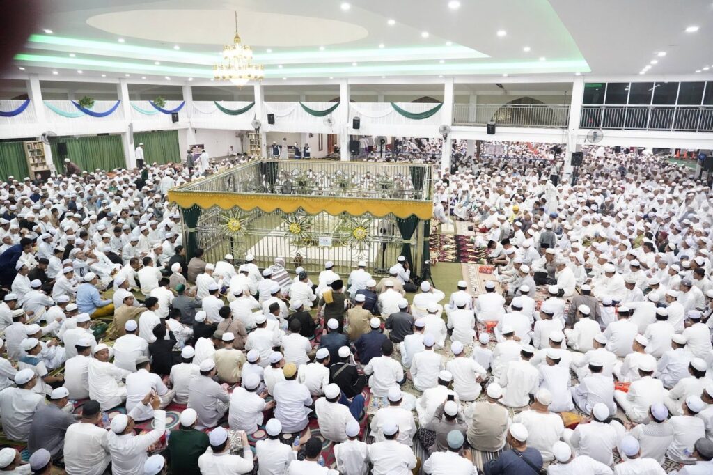 BANJARMASIN- Wali Kota Banjarmasin, H. Muhammad Yamin HR, menghadiri haul ke-6 Almarhum K.H. Ahmad Zuhdiannoor (Guru Zuhdi) di Kawasan Kubah Guru Zuhdi, Belakang Masjid Jami Sungai Jingah, Banjarmasin, Kamis malam (26/2/2026). Acara yang bertepatan dengan malam 9 Ramadhan ini dihadiri ribuan jamaah dari berbagai penjuru Kalimantan Selatan.