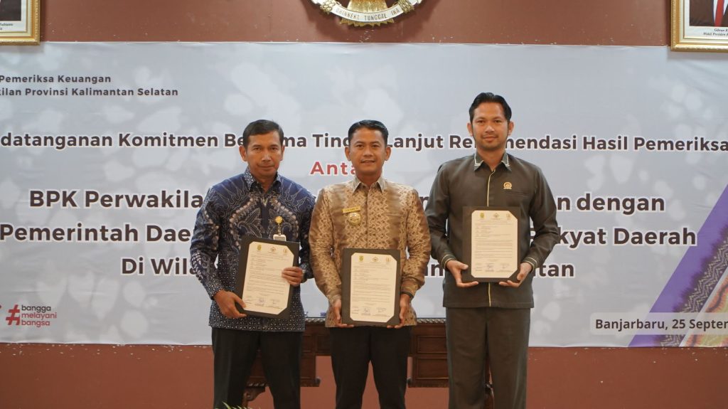 BANJARBARU – Upaya memperkuat tata kelola keuangan daerah kembali ditekankan melalui penandatanganan komitmen bersama tindak lanjut rekomendasi hasil pemeriksaan (TLRHP) Badan Pemeriksa Keuangan (BPK) RI Perwakilan Kalimantan Selatan.